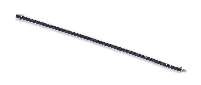 containing 44 French cut sapphires weighing approximately 11.00 carats total, millegrain edgework and engraved gallery.Hand inscribed: P 1508.