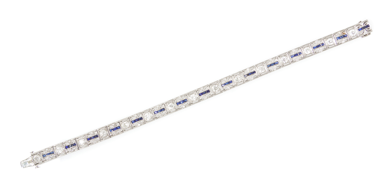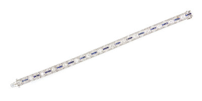 An Art Deco Platinum, Diamond and Synthetic Sapphire Bracelet,