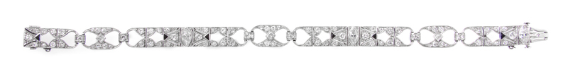 An Art Deco Platinum, Diamond and Onyx Open Link Bracelet,