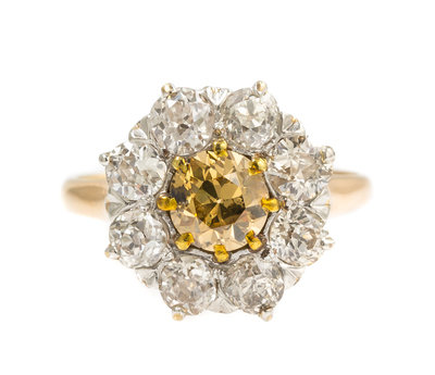 An Antique Yellow and White Gold, Colored Diamond and Diamond Ring,