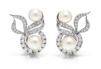 A Pair of White Gold, Pearl and Diamond Earrings,