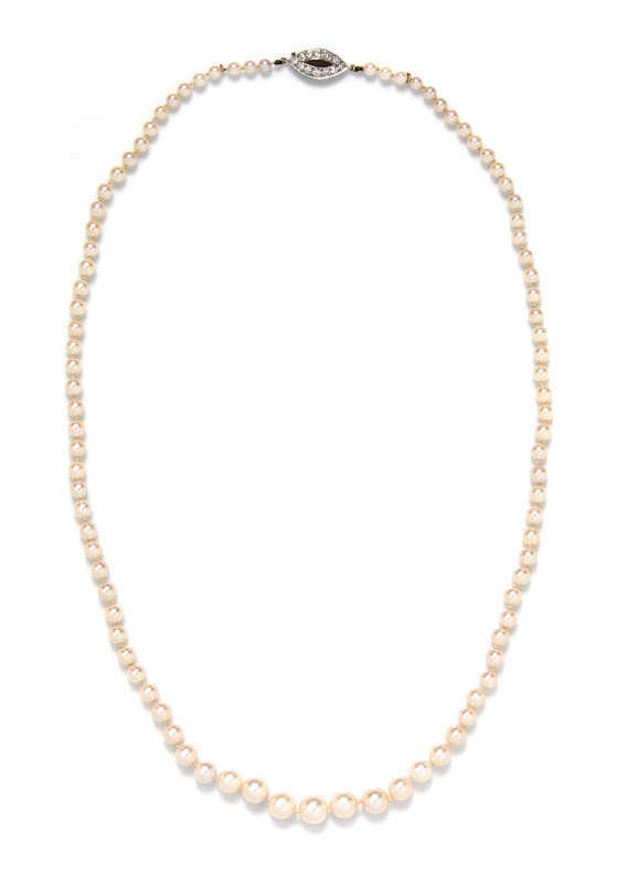 A Vintage Graduated Single Strand Cultured Pearl Necklace, French,