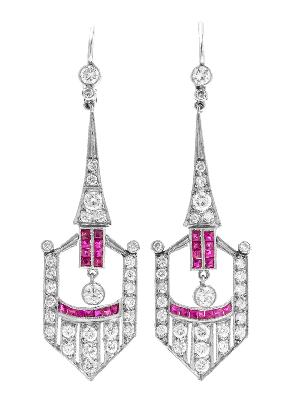 A Pair of Platinum, Yellow Gold, Ruby, and Diamond Earrings,