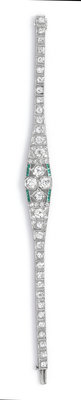 An Art Deco Platinum, Diamond and Simulated Emerald Bracelet,