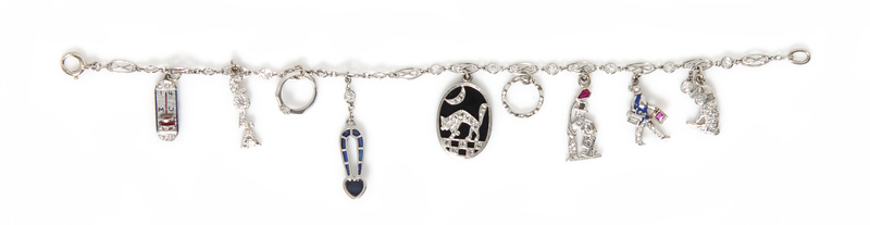 An Art Deco Platinum and Diamond Charm Bracelet,