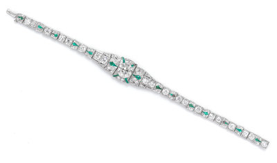 An Art Deco Platinum, Diamond and Emerald Bracelet,