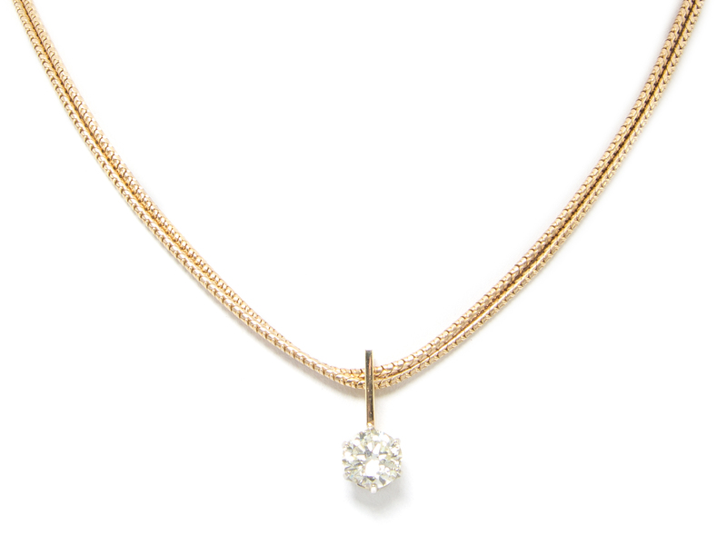 A 14 Karat Yellow Gold and Diamond Solitaire Necklace,