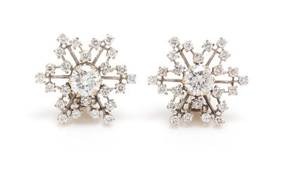 A Pair of 14 Karat White Gold Diamond Cluster Earclips,