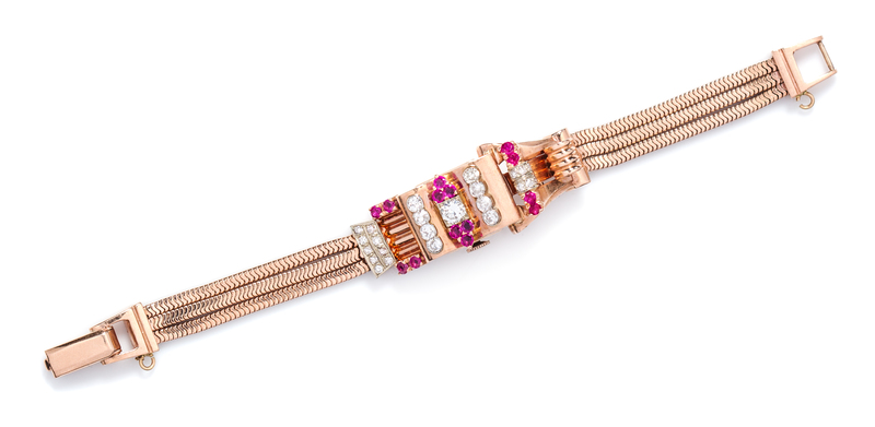 A Rose Gold, Ruby and Diamond Surprise Wristwatch,