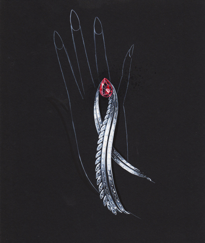 A Collection of Original Gouache on Paper Jewelry Designs by Anne Howe Geyer for Trabert & Hoeffer-Mauboussin and Others, Circa 1950's,