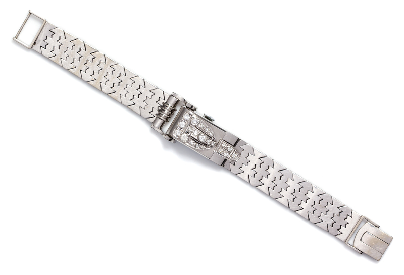 A Retro White Gold and Diamond Surprise Wristwatch,