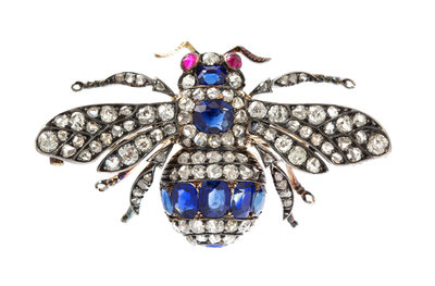 A Fine Victorian Silver Topped Gold, Sapphire and Diamond Bee Brooch,