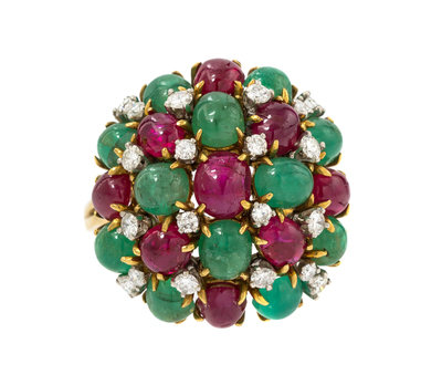 An 18 Karat Yellow Gold Ruby, Emerald and Diamond Ring,