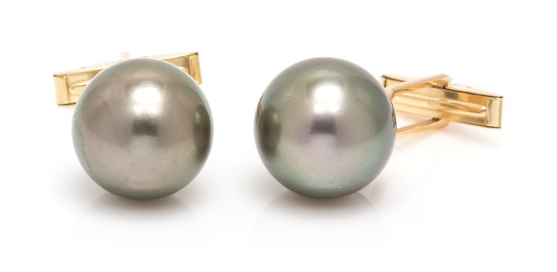 A Pair of 14 Karat Yellow Gold and Cultured Tahitian Pearl Cufflinks,