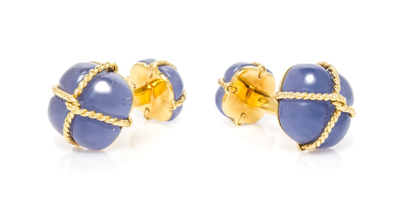 A Pair of 18 Karat Yellow Gold and Chalcedony Cufflinks, Verdura,