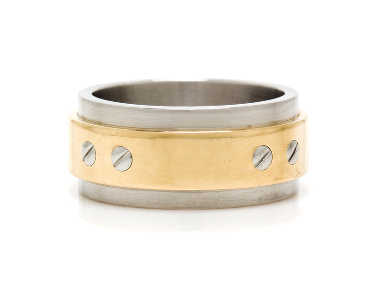 An 18 Karat Yellow Gold and Stainless Steel Santos 100 Ring, Cartier,