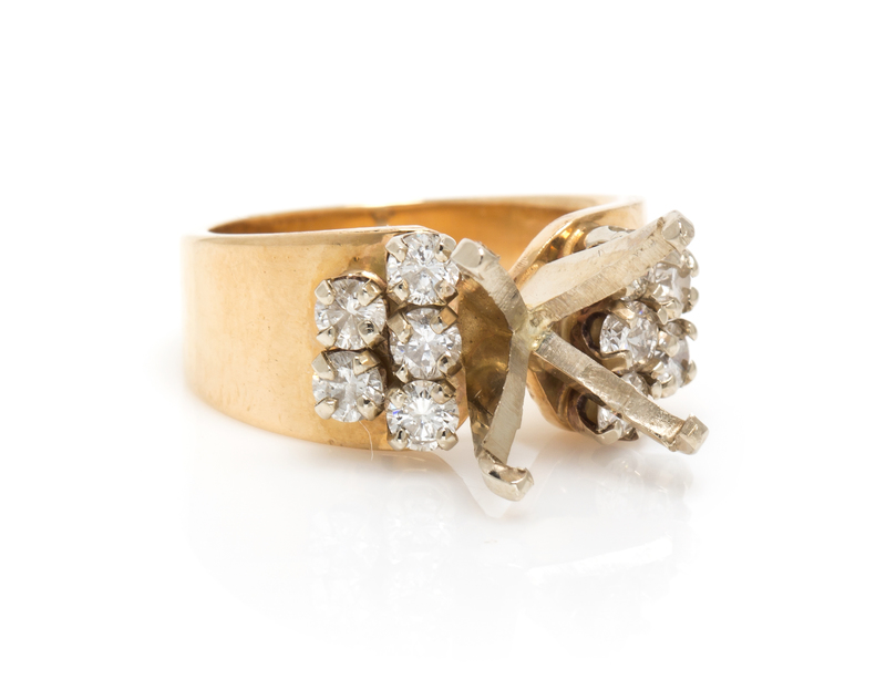 measuring approximately 11.19 x 11.23 x 5.78 mm, together with a 14 karat yellow gold ring setting containing 10 round brilliant cut diamonds weighing approximately 1.00 carat total.Stamp: NAMANO 14K.