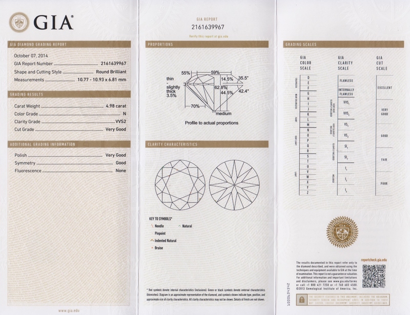 A 4.98 Carat Round Brilliant Cut Diamond,