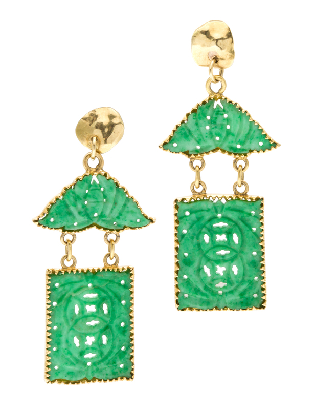 A Pair of 18 Karat Yellow Gold Jade Earrings, Janiye,