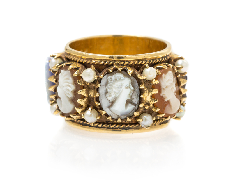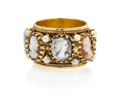 A 14 Karat Yellow Gold, Cameo and Seed Pearl Ring,