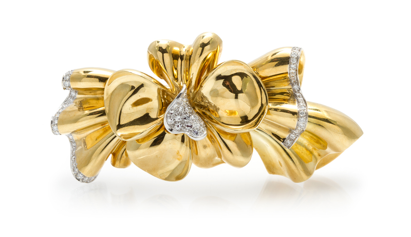 An 18 Karat Yellow Gold and Diamond Bow Brooch, Circa 1960,