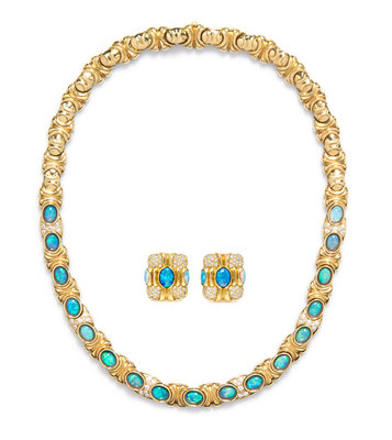 An 18 Karat Yellow Gold Diamond and Opal Demi Parure,