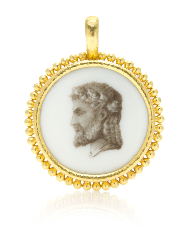 A 19 Karat Yellow Gold and Antique Button Pendant, Elizabeth Locke,