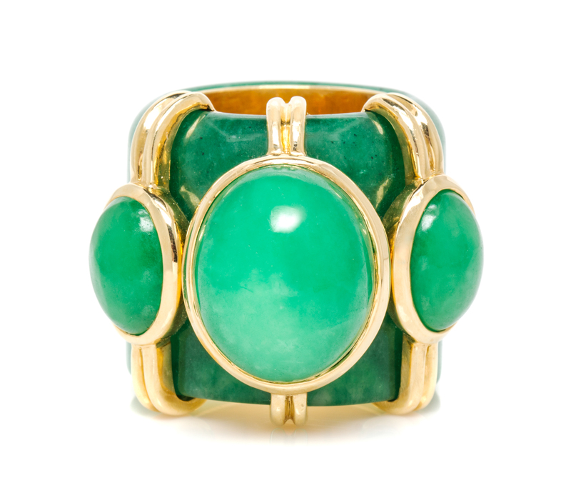 An 18 Karat Yellow Gold and Jade Archer's Ring, Tony Duquette,
