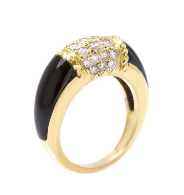 An 18 Karat Yellow Gold, Onyx, and Diamond Ring