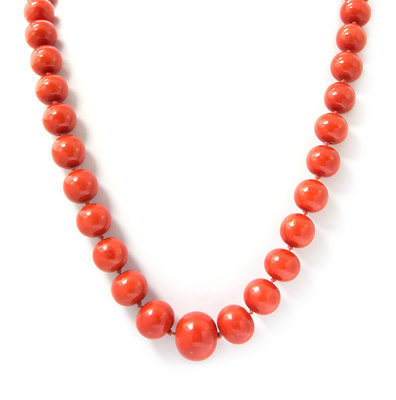 An Impressive Graduated Single Strand Coral Bead Necklace,
