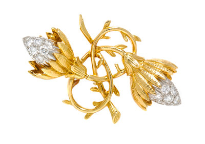 An 18 Karat Yellow Gold, Platinum and Diamond "Twin Buds" Brooch, Schlumberger for Tiffany & Co.,