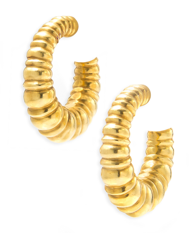 A Pair of 18 Karat Yellow Gold Hoop Ear Clips,