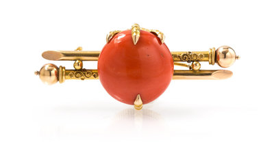 An Antique 18 Karat Yellow Gold and Coral Brooch,