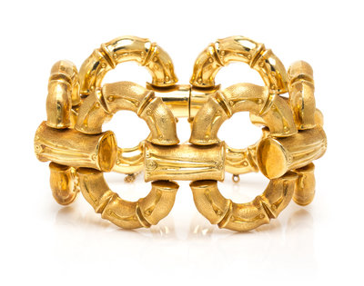 An 18 Karat Yellow Gold Bamboo Link Bracelet,