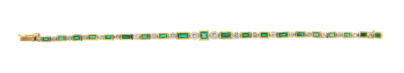 A Yellow Gold, Platinum, Emerald and Diamond Line Bracelet,