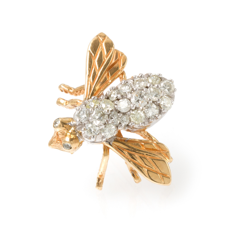 A 14 Karat Yellow Gold and Diamond Bee Pin,