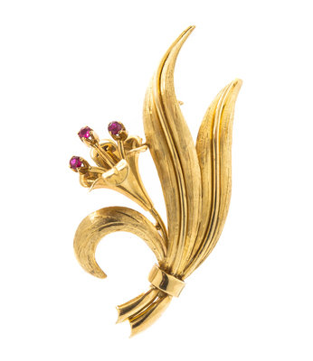 An 18 Karat Yellow Gold and Ruby Floral Brooch, Tiffany & Co.,