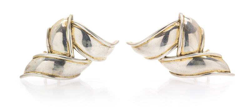 A Pair of Sterling Silver Ribbon Motif Earclips, Tiffany & Co.,