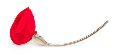 in a stylized poppy motif with red silk flower.Stamp: TIFFANY & CO. Elsa Peretti 925 SPAIN.Accompanied by a signed inner and out box.