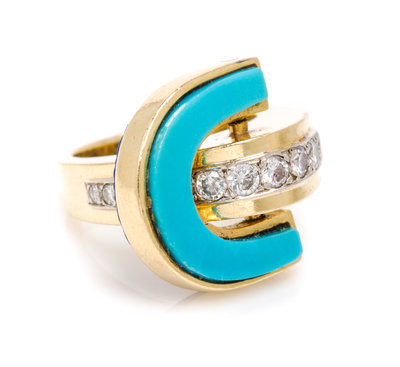 A Yellow Gold, Diamond, Turquoise, and Lapis Lazuli Flip Ring,