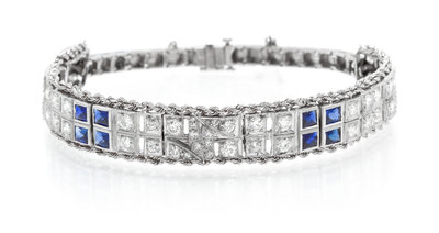 A Platinum, White Gold, Diamond and Synthetic Sapphire Bracelet,