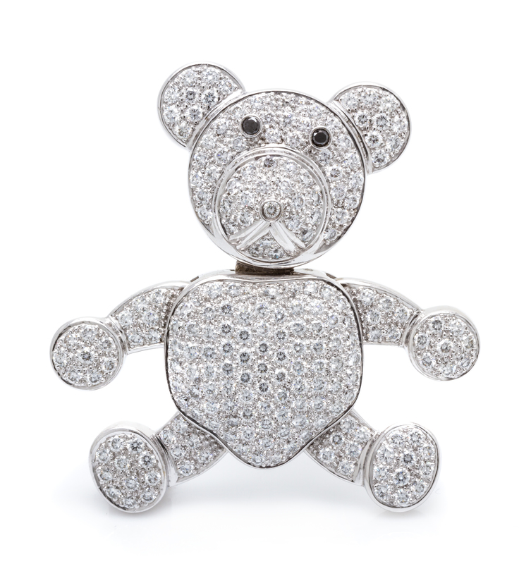An 18 Karat White Gold and Diamond Teddy Bear Pendant,