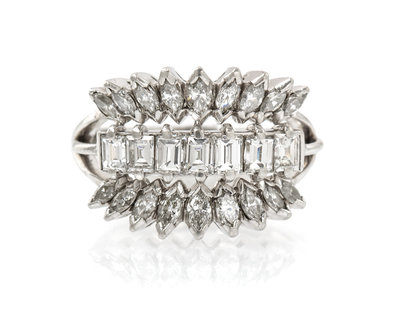 containing seven straight baguette cut diamonds weighing approximately 0.70 carat total and 18 marquise brilliant cut diamonds weighing approximately 0.92 carat total.Stamp: 10%IRID PLAT.