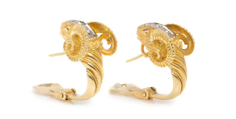 An 18 Karat Yellow Gold, Diamond and Ruby Ram's Head Demi Parure,