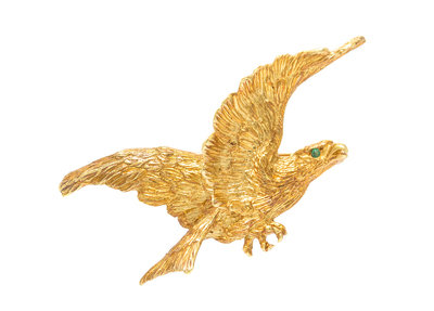 An 18 Karat Yellow Gold and Emerald Eagle Brooch, Cellino,