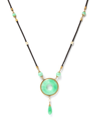 A Vintage 14 Karat Yellow Gold, Jade, Seed Pearl and Cord Necklace,