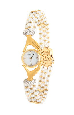 An 18 Karat Yellow Gold, Cultured Pearl and Diamond Bracelet Watch, Carrera y Carrera,
