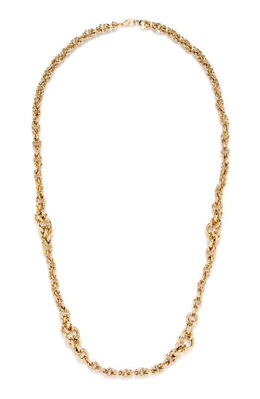 A 14 Karat Yellow Gold Fancy Link Chain Necklace.