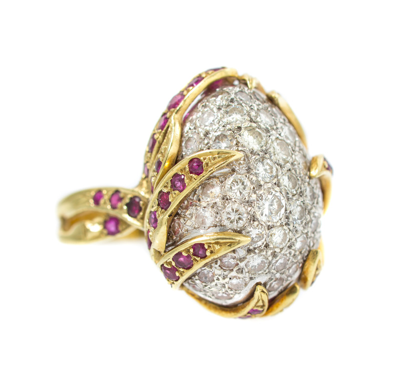 containing 54 round mixed cut rubies weighing approximately 1.62 carats total and 48 round brilliant and single cut diamonds weighing approximately 1.69 carats total.