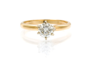 A 14 Karat Yellow Gold and Diamond Solitaire Ring,